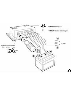 Beskytter mot dyputlading av bilbatteriet ved automatisk å koble ut belastninger som kjøleinnretninger, varmeapparater, radio osv. når batterispenningen synker til et minimumsnivå